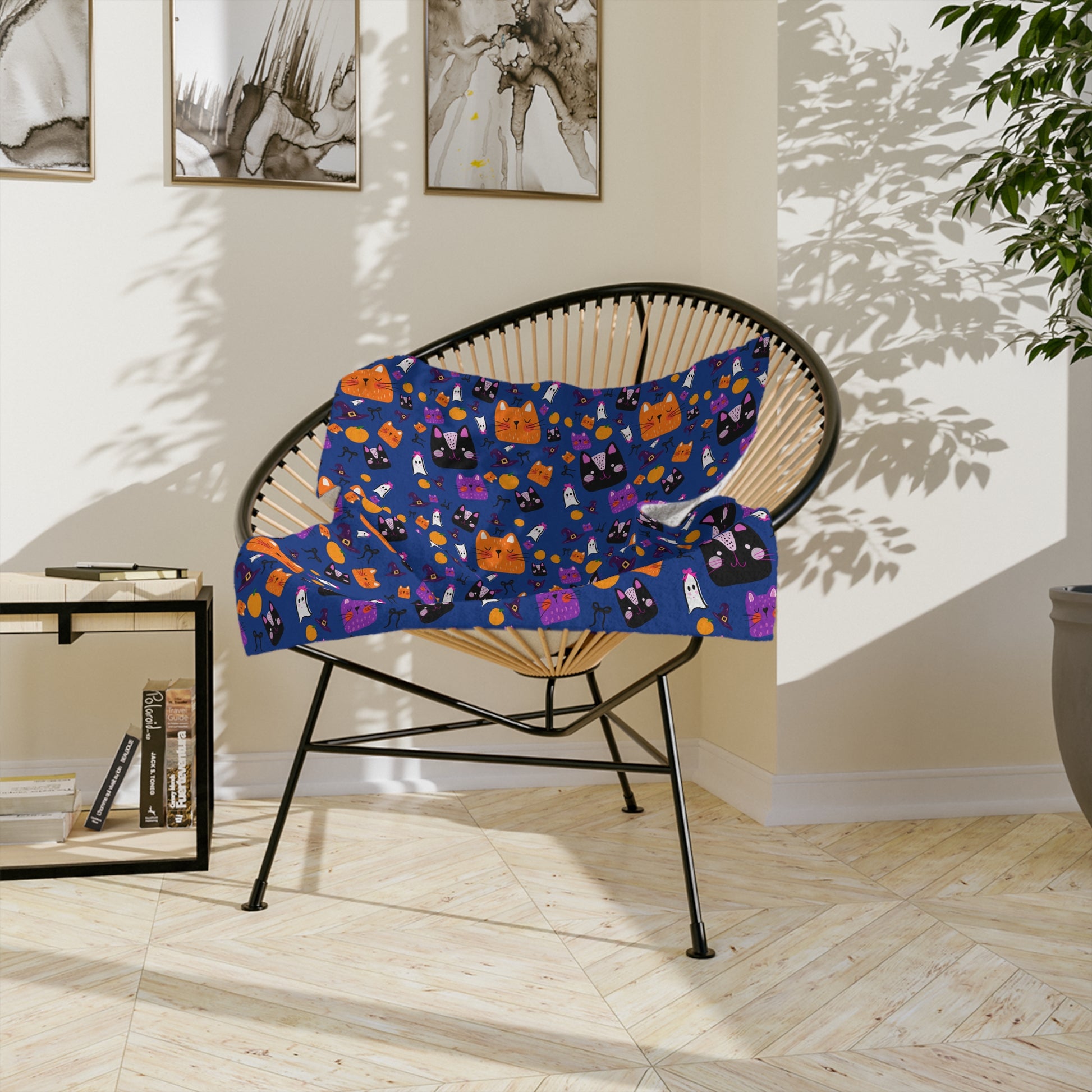 Wrap yourself in comfort and cozy up with this velveteen microfiber blanket. Soft and plush, it brings warmth and style to any space. The vibrant colors and whimsical cat-themed design create a playful atmosphere, perfect for relaxing nights or lively gatherings with friends. Ideal for cat lovers and those seeking a touch of joy in their decor, this blanket makes an excellent gift for holidays like Halloween, cozy movie nights, or housewarming celebrations. Snuggle up with this delightful accessory that enhances your home while offering comfort on chilly evenings.