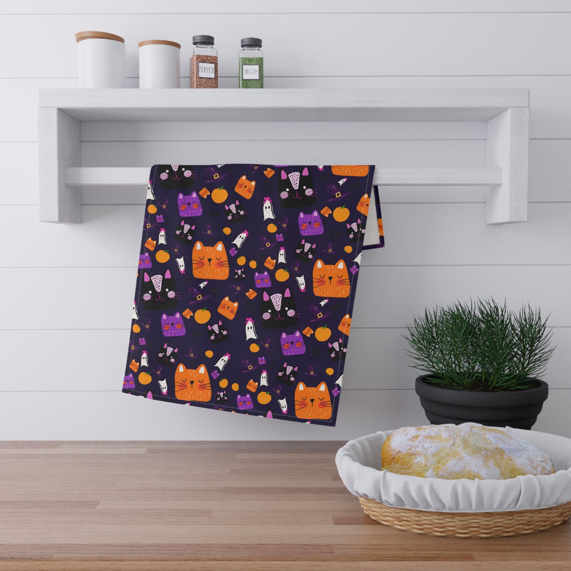 Halloween Cat Tea Towels, Cute Kitchen Decor, Fall Home Accessories, Gift for Cat Lovers, Spooky Holiday Cooking