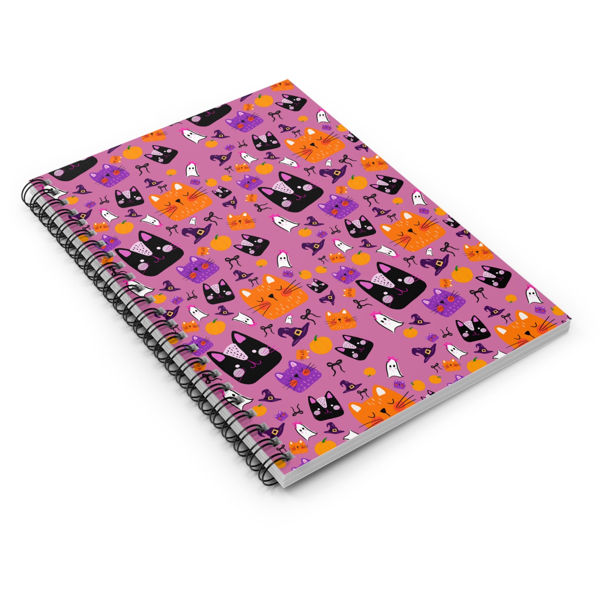 Introducing a charming Spiral Notebook that combines functionality with delightful design. Bursting with playful illustrations of cats, pumpkins, and whimsical elements, this notebook brings a lighthearted vibe to your daily note-taking. Perfect for students, artists, or anyone who loves to jot down thoughts, plans, or sketches, this notebook easily fits into the routines of both work and leisure. The sturdy metal spiral binding allows for easy page turning, making it a delightful companion for your creative pursuits. Ideal for back-to-school season, Halloween-themed events, or as a delightful gift for cat lovers and stationery enthusiasts alike, this notebook adds a personal touch to any workspace or study area.